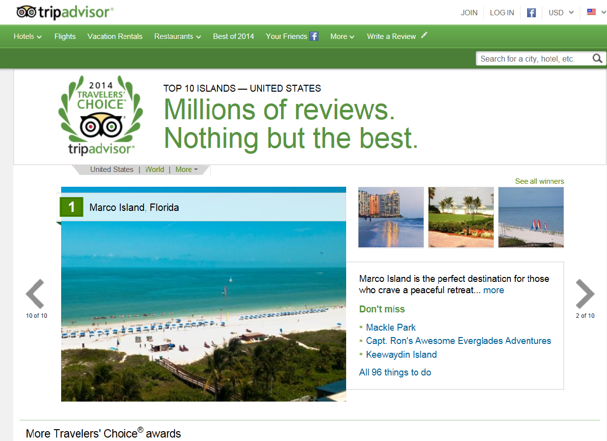 TripAdvisor ranks Marco Island Best Island in the U.S. – #4 of Top 10 Islands in the world!